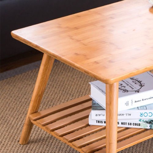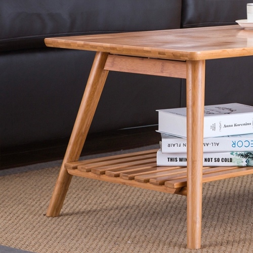 Name: Modern Bamboo Table Legs Foldable Natural Finish Living Room Bamboo Furniture Rectangle Coffee Center Table With Storage Shelf
